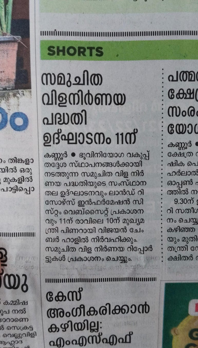 സമുചിത വിള നിർണ്ണയ പദ്ധതി – വാർത്തകൾ ഓഗസ്റ്റ് 12, 2025നവംബർ 25, 2025 keralastatelandusedepartment Pages: 1 2 3 4 5 6 7